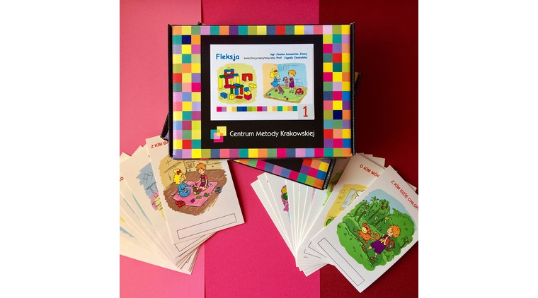 Fleksja - postacie to pomoc przeznaczona do badania poziomu opanowania prawidłowej odmiany rzeczowników przez przypadki i ćwiczeń utrwalających użycie form fleksyjnych. Materiał językowy został dobrany według centrów zainteresowań dzieci w wieku przedszkolnym a przedstawione na obrazkach sytuacje są im bliskie i mają zachęcać do tworzenia wypowiedzi.